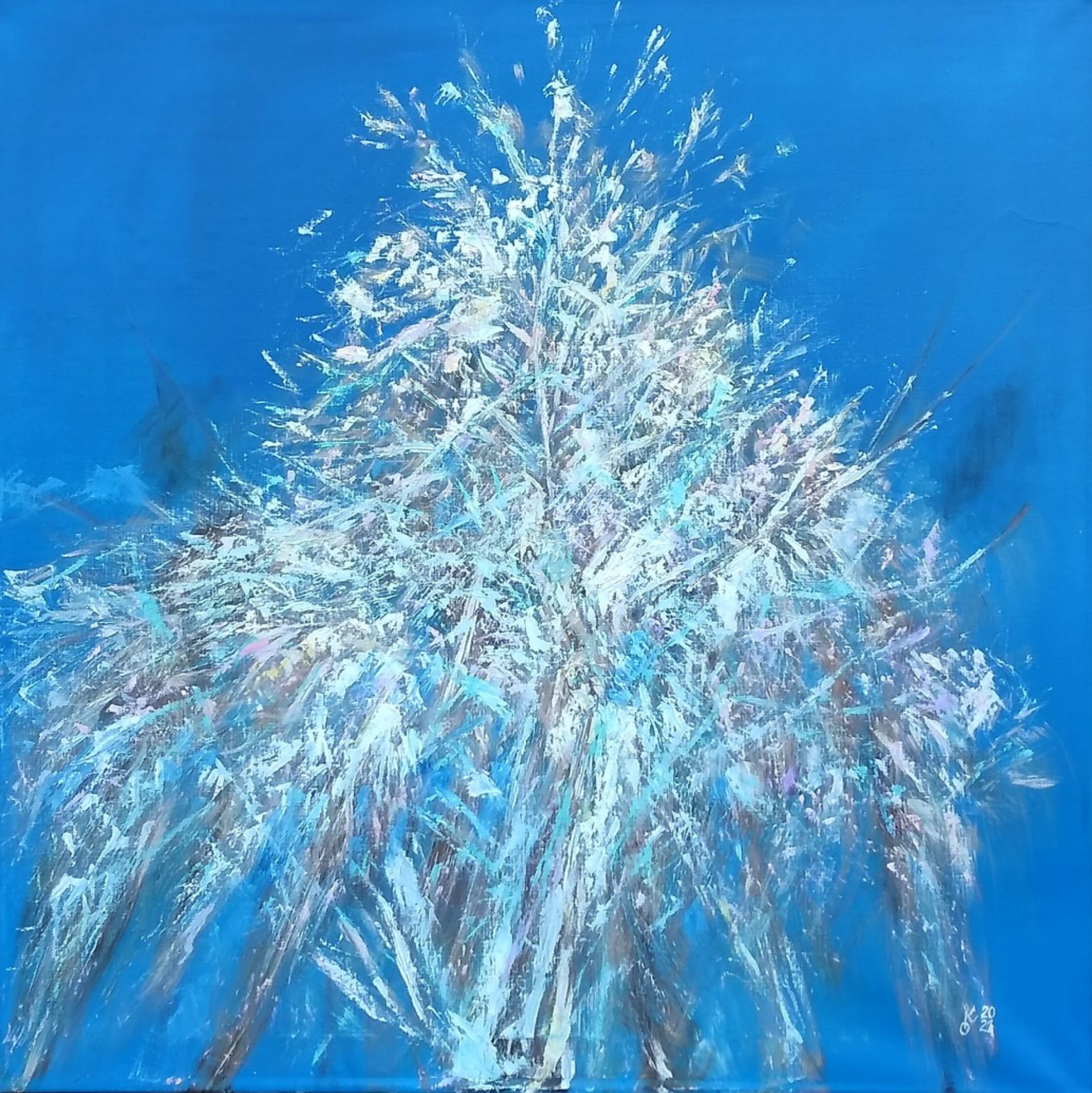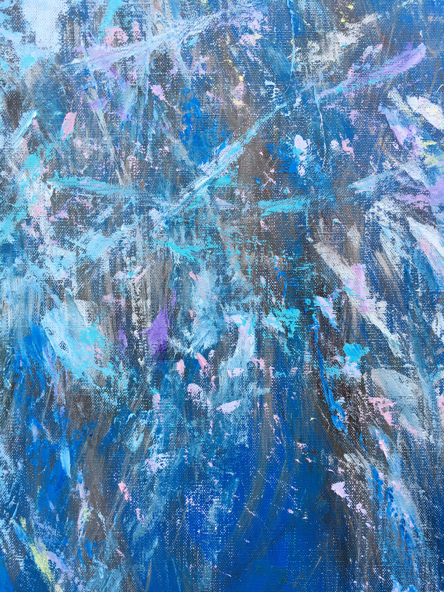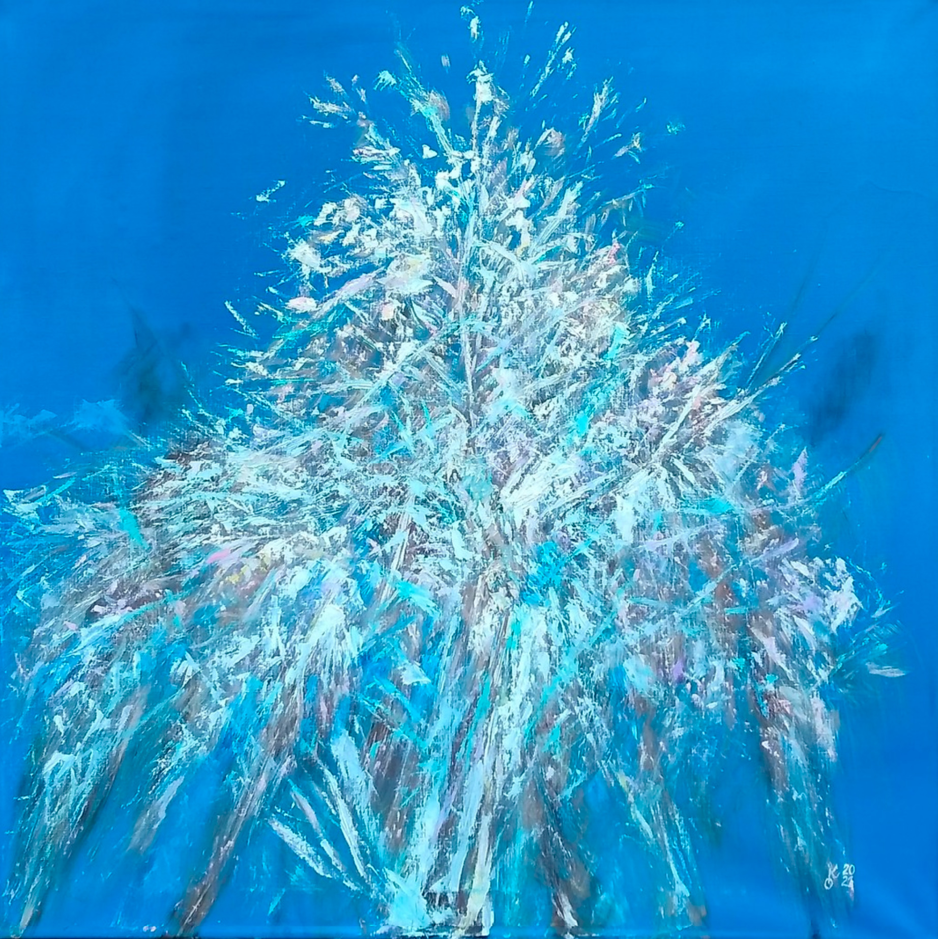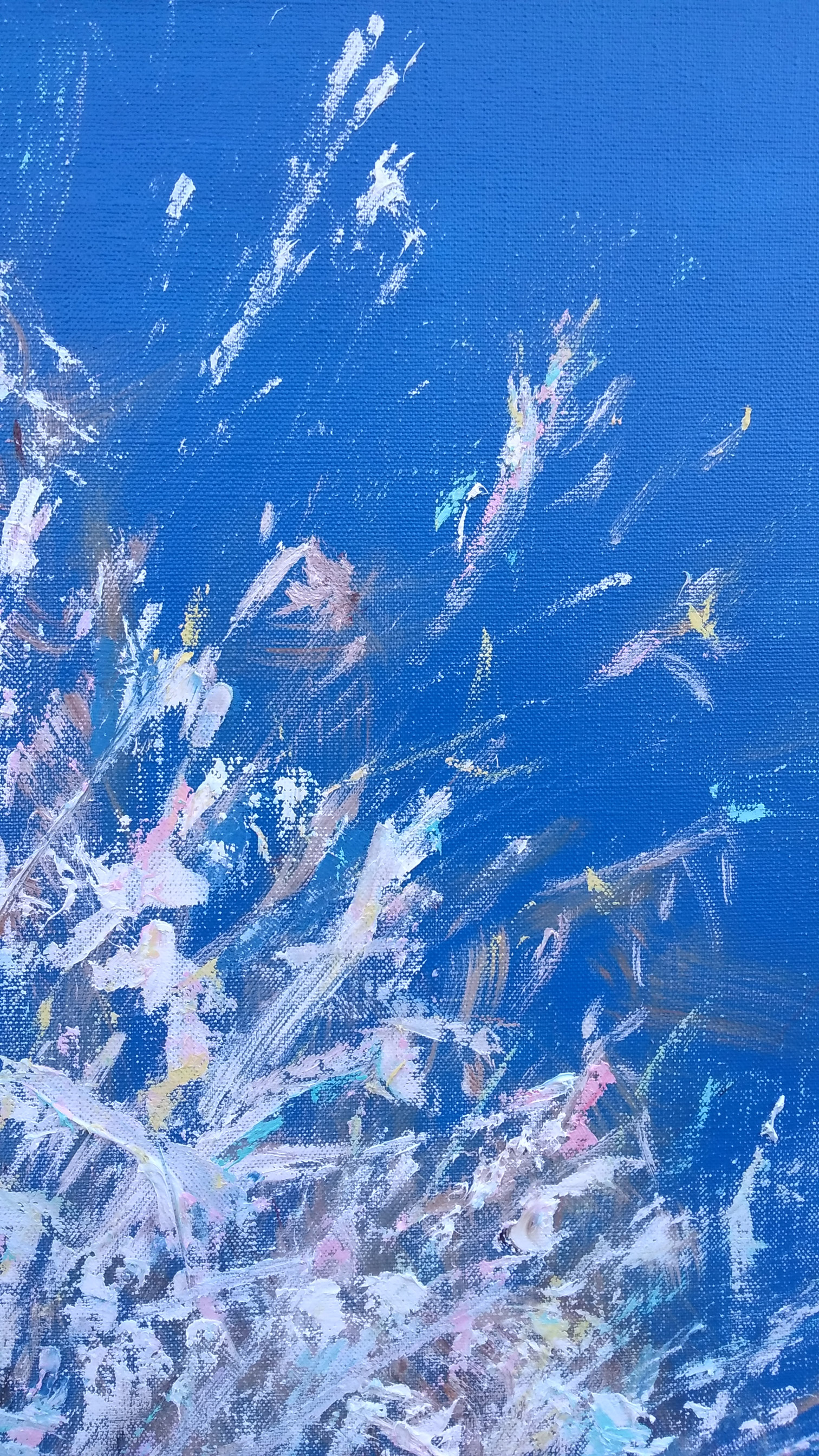 Serpentines of sparks scated on the branches, explosions of blue, purple, pink, grey, green – firework of joy.