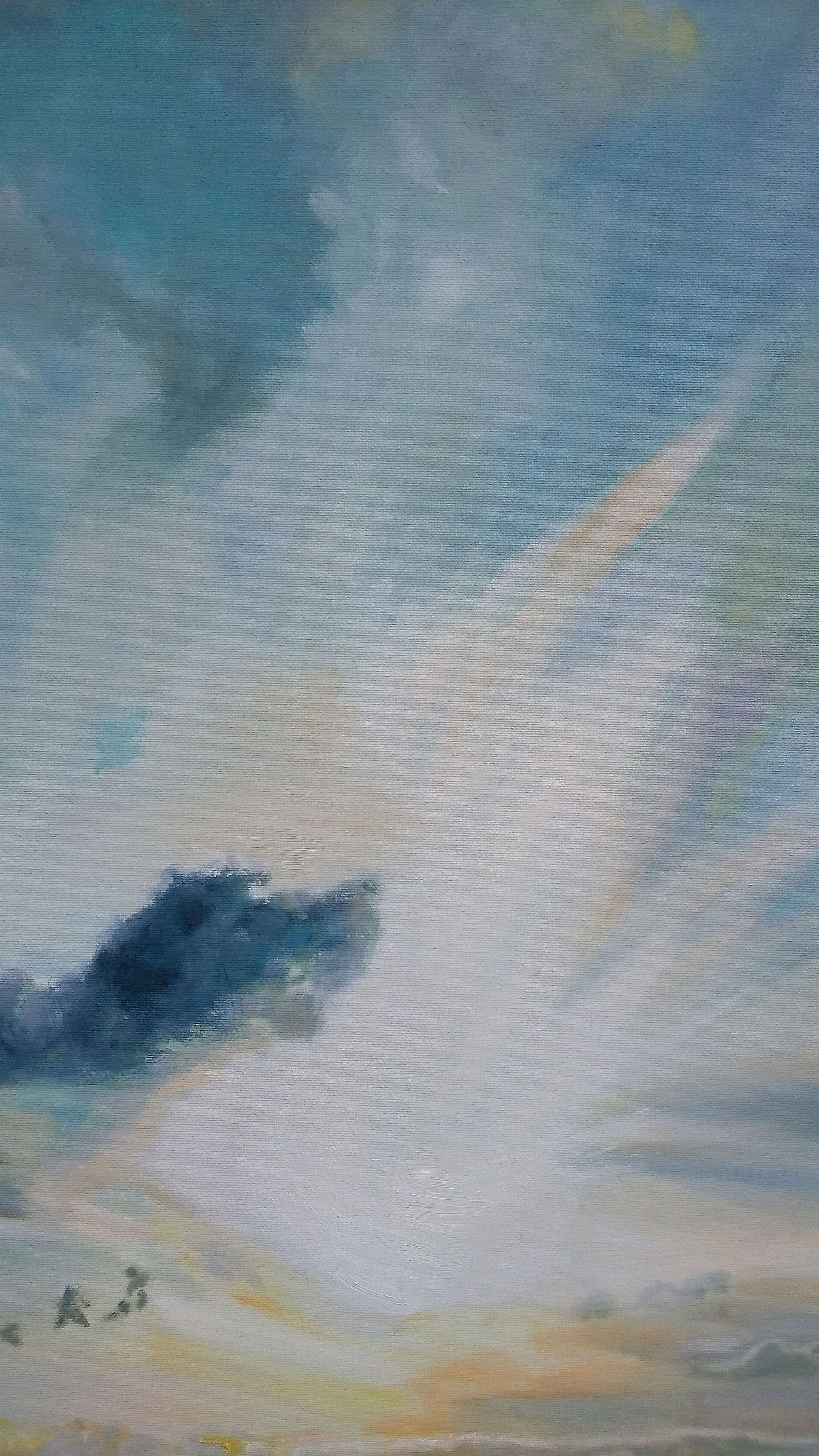 This picture was one of the first painted by me in the framework of the Wings project, on which I have been working since the beginning of quarantine and until now. The idea is to use paired canvases of the same size to convey some specific locality, characteristic of a given state, in one picture from a pair, and on the other - my impressions of what is the essence of this country.